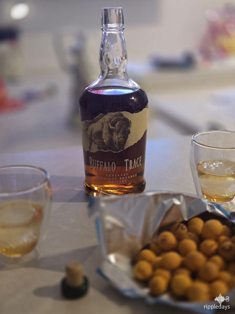 얼음을 넣어 차갑게 마시면 도수가 낮아지고 향은 억제되지만 훨씬 부드러운 목 넘김을 경험할 수 있습니다. 버팔로 트레이스는 체급이 좋아 얼음이 녹아도 맛이 쉽게 무너지지 않는 장점이 있습니다.
