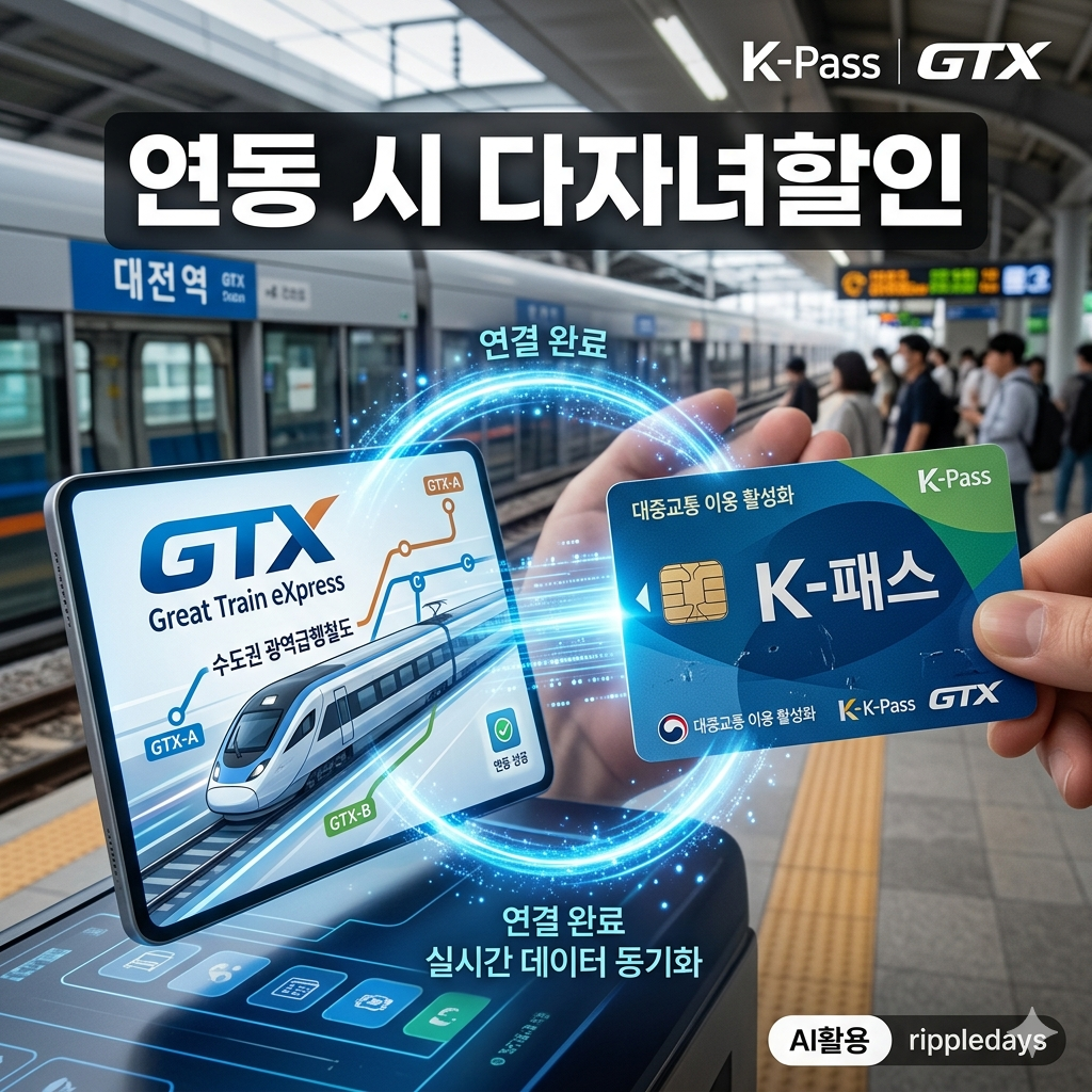 GTX는 별도의 다자녀 현장 할인보다는 **'K-패스 다자녀 유형'**을 통한 사후 환급 방식이 주를 이룹니다. GTX 요금은 거리에 따라 4,000원에서 5,000원을 훌쩍 넘기도 하는데요. K-패스를 사용하면 이 금액의 상당 부분을 돌려받을 수 있습니다.
